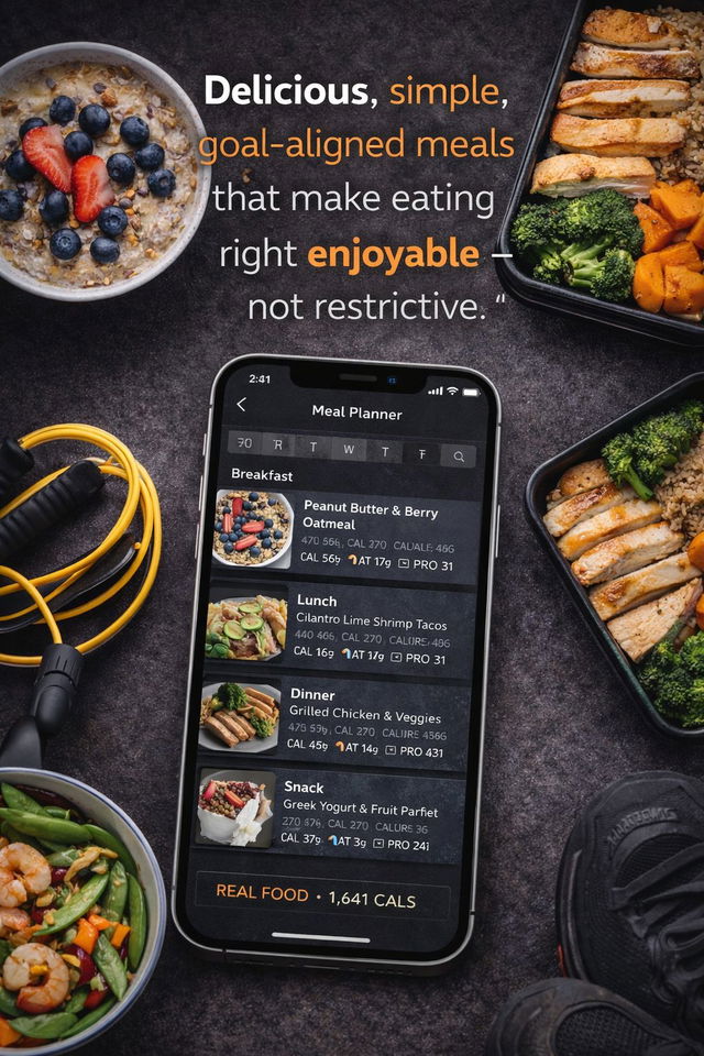 Nutrition Support & Recipes: Simple, realistic food ideas that fit your macros. No extreme diets or food rules. Built for sustainability, not restriction.